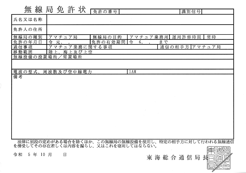 - 引き続き、書類による局免許の申請もできます。その場合は「免許事項証明書」が交付されます。電子的閲覧はアカウントがないとできません。また、移動運用では正本を携帯しなければならないのは上記の通りです。